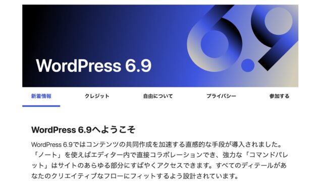 2025年12月3日にWordPress最新バージョン6.9日本語版が公開されました。